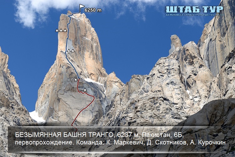 1. БЕЗЫМЯННАЯ БАШНЯ ТРАНГО, 6237 м, Пакистан, 6Б, первопрохождение. Команда: К. Маркевич, Д. Скотников, А. Курочкин