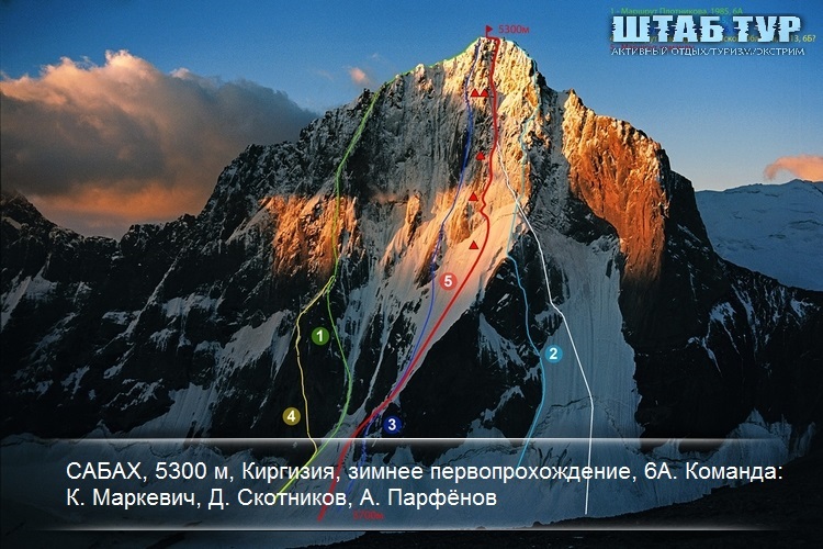 4. САБАХ, 5300 м, Киргизия, зимнее первопрохождение, 6А. Команда: К. Маркевич, Д. Скотников, А. Парфёнов