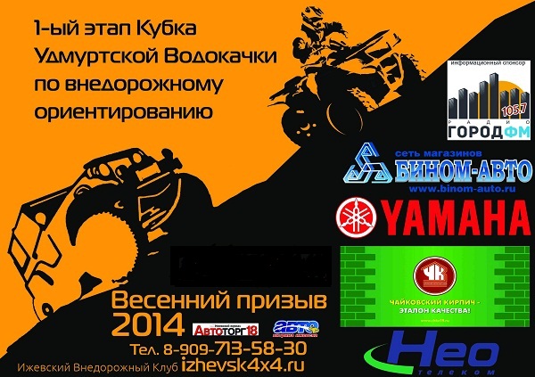 Ижевский Внедорожный Клуб приглашает на традиционные весеннее мероприятие по внедорожному ориентированию "Весенний призыв". Испытать на себе силу удмуртского бездорожья, а также приятно провести время в кругу единомышленников. Кроме качественной трофийной трассы, вас ждет заряд драйва от выступления рок групп, вкуснейшее шашлычное меню, а так же интерактивные зоны для тех, кто остается в лагере ждать своих «бойцов»