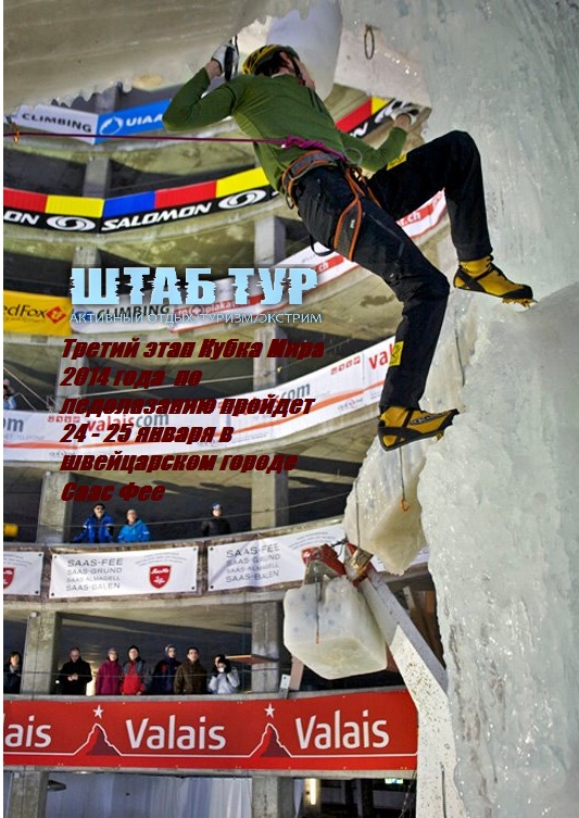 Швейцарском городе Саас Фее Дата: 24 января 2014 - 25 января 2014 Вид спорта: ледолазание Тип события: Международное Место проведения: Швейцария, Saas Fee Организатор: Международная федерация UIAA