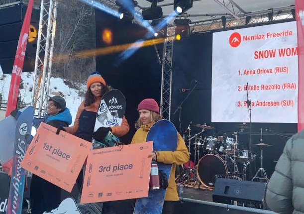 SNOWBOARD CATEGORY (женщины сноуборд) 1 Anna Orlova (RUS) 80.00 2 Estelle Rizzolio (FRA) 78.00 3 Sara Andresen (SUI) 72.00