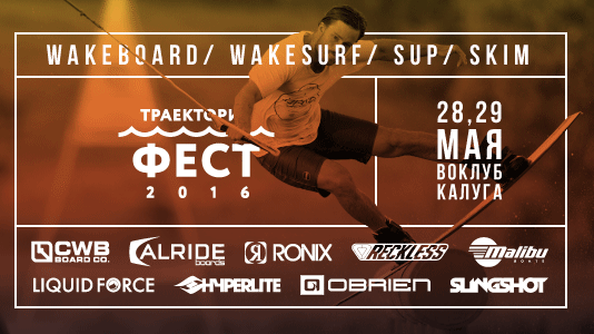 «Траектория ФЕСТ 2016» – это битва вейкбординга и вейксерфинга, все более популярного SUP-бординга (Stand Up Paddle Boarding), скимбординга и др. В рамках фестиваля вас ждут масштабные тесты катального оборудования от множества брендов, включая Alride, CWB, Hyperlite, Liquid Force, O’Brien, Reckless, Ronix и Slingshot.