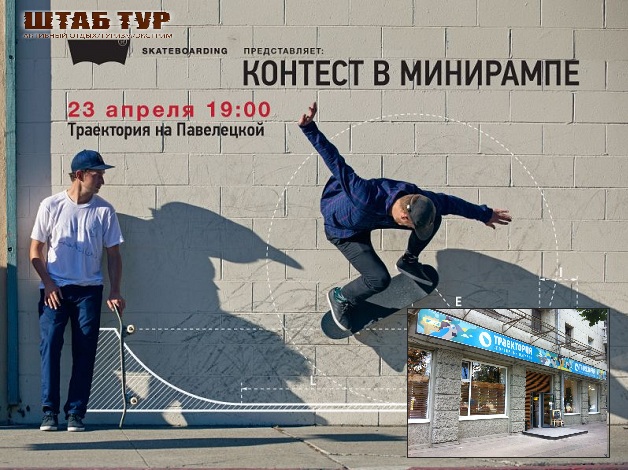 Место: г. Москва, Космодамианская наб., 40/42 Контест в Минирампе, Levi`s Skateboarding, Traektoria. 23 апреля возле магазина Траектория пройдет первый в этом сезоне фановый контест в мини-рампе. Соревнования будут проводиться в формате «легкие деньги». Это означает, что за каждый хороший трюк участники будут тут же получать наличные! Самые сильные райдеры получат подарки от Levi`s Skateboarding