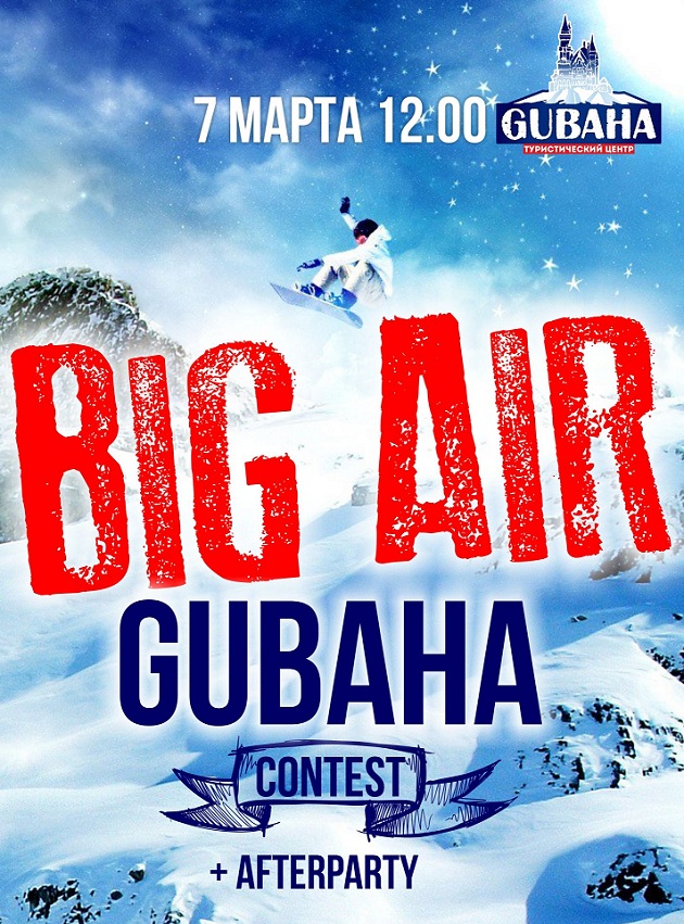 «Gubaha Big Air Contest» (Экстрим) – соревнования в дисциплине Big Air, которые пройдут в третий раз на горнолыжном курорте Урала в г.Губаха 7 марта. Ежегодно на зимнее мероприятие в Пермском крае приедут райдеры из Тюмени, Уфы, Ижевска, Екатеринбурга, Челябинска и других городов. Big Air – это сложные трюки с большого трамплина с транзитом 15 метров.