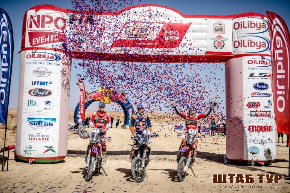 1. К. Сайнс / Л. Крус (Team Peugeot Total) — 49:16.18 2. Н. Аль-Аттия / М. Бомель (Toyota Gazoo Racing SA) +43.40 3. Д. де Вильерс / Д. фон Цитцевитц (Toyota Gazoo Racing SA) +1:16.41 4. С. Петерансель / Ж.-П. Коттре (Team Peugeot Total) +1:25.29 5. Я. Пшигонски / Т. Колсул (Orlen Team X-Raid / MINI) +2:45.24 6. Х. Аль-Кассими / К. Пансери (PH-Sport / Peugeot) +4:20.58 7. М. Прокоп / Я. Томанек (MP-Sports / Ford) +7:20.49 8. П. ван Меркстейн / М. Мартон (Overdrive Toyota) +7:41.28 9. С. Халперн / Э. Пулента (South Racing / Toyota) +9:08.10 10. Л. Альварес / Р. Хауи (Overdrive Toyota) +9:18.46.