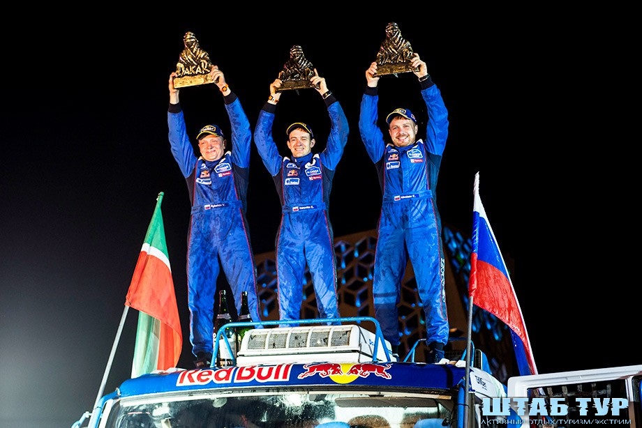 Самая напряжённая борьба последних этапов развернулась в категории грузовиков: лидер «КАМАЗ-мастер» Эдуард Николаев схлестнулся в принципиальном противостоянии с экипажем «Де Рой Ивеко» Федерико Вильягрой. На финальных 284 километрах Эдуарду Николаеву нужно было просто довезти грузовик до финиша, с чем теперь уже четырёхкратный чемпион «Дакара» благополучно справился. «КАМАЗ-мастер» в итоге увозит в Набережные Челны сразу два «бедуина» — Айрат Мардеев, несмотря на все злоключения, завоевал бронзовые награды. Второе место завоевал лидер «МАЗ-СПОРТавто»Сергей Вязович.