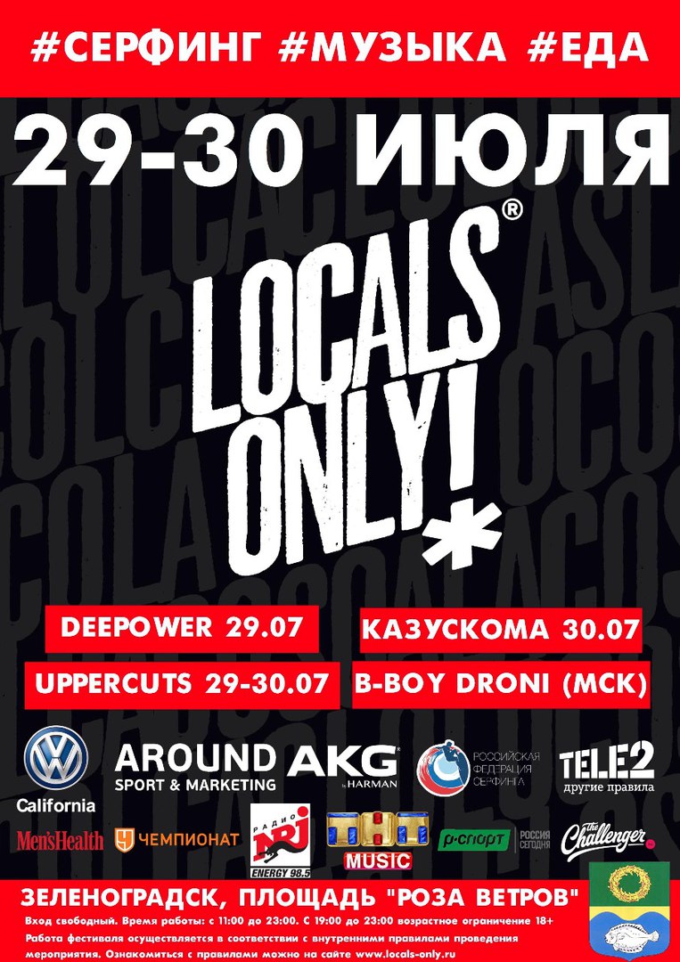 В городе Зеленоградске! завершился первый Чемпионат России по сёрфингу Bulli Surf Cup в категории «Длинная доска» и всероссийские соревнования в категории «Короткая доска» среди мужчин, женщин и любителей. В тяжелых погодных условиях и сложной борьбе места победителей распределились следующим образом: