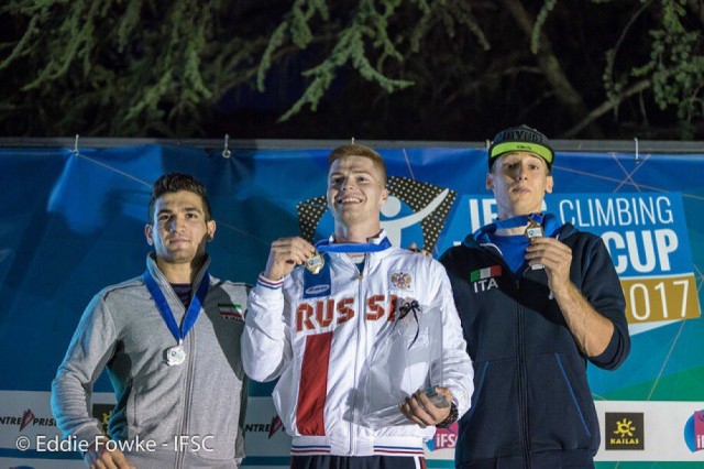 У мужчин первое место занял победитель этапа Кубка мира (2017) в Чунцине в скорости Владислав Деулин (Свердловская область, г.Екатеринбург, СДЮСШОР горных видов спорта, УрФУ). В решающем забеге он оказался быстрее рекордсмена мира иранца Резы Алипуршеназандифара. Для Владислава это уже пятая награда на этапах КМ, и четвертая в сезоне-2017.