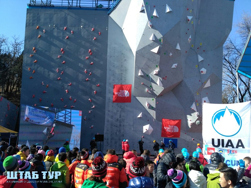 Первый раз в Пекине проводили старт такого уровня.Соревнования начались с квалификации в трудности : две общие открытые трассы, мужские и женские. Погода стояла солнечная,теплая. Скорость проходила в формате парных гонок, на залитой скале льдом.