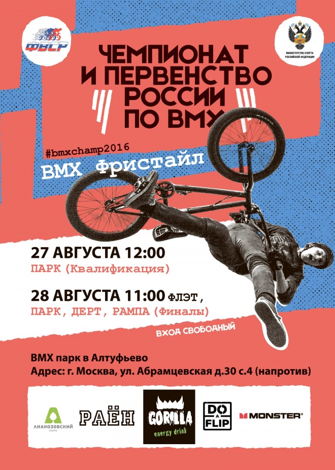 Дата:28 августа Место:парк Алтуфьево Дисциплины: флэт, рампа, дёрт и парк. 28 августа в BMX парке Алтуфьево прошел Чемпионат России по BMX Фристайлу. Спортсмены из различных регионов нашей страны соревновались в четырех велоэкстремальных дисциплинах: флэт, рампа, дёрт и парк.