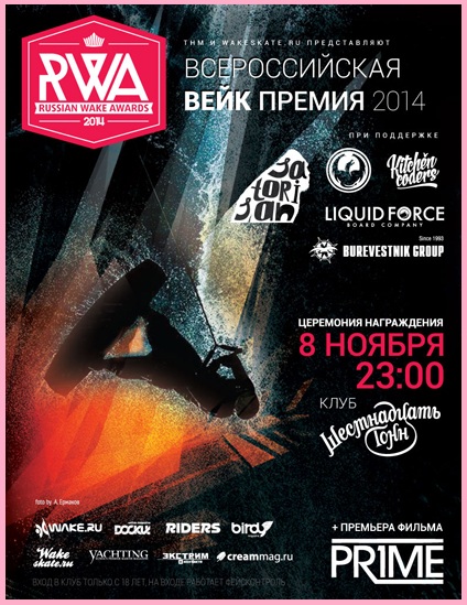 В эту субботу, 8 ноября, в клубе 16 Тонн состоялось награждение победителей премии Russian Wake Awards. НАГРАЖДЕНИЕ ЛУЧШИХ ДОЛЖНО ДАТЬ ДОПОЛНИТЕЛЬНЫЙ СТИМУЛ: РАЙДЕРАМ - ТРЕНИРОВАТЬСЯ ЕЩЕ УСЕРДНЕЕ, ОПЕРАТОРАМ - СНИМАТЬ ЕЩЕ КАЧЕСТВЕННЕЕ, ОРГАНИЗАТОРАМ - ПРОВОДИТЬ МЕРОПРИЯТИЯ И СТРОИТЬ ПАРКИ ЕЩЕ ЛУЧШЕ.