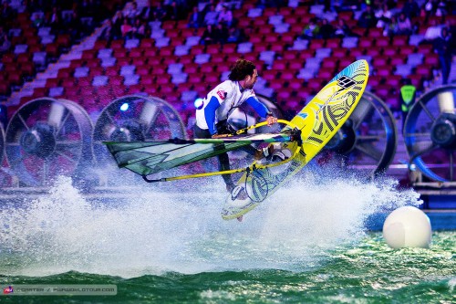 Итоги этапа Кубка мира по виндсерфингу, который прошел внутри закрытого стадиона в Варшаве, Польша. Лучшие спортсмены со всех уголков света собрались здесь, бросили вызов искусственным волнам 90-метрового крытого бассейна, где специальные турбины генерирует ветер скоростью до 35 узлов. дабы доказать свое мастерство в трех категориях: слалом, фристайл и прыжки.