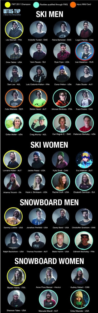 Количество участников 45 спортсменов в четырех категориях - лыжники, лыжники, мужчины сноуборда и женщины сноуборда - количество этапов 5. Все гонщики проведут квалификационный этап сокращений после четвертой остановки в Фибербрунне, Австрия, перед тем как прибыть в финальный финал в Вербье, Швейцария, с 31 марта по 8 апреля 2018 г. появятся новые гоншики Trace Cooke (CAN), Киви Крейг Мюррей (NZL), Mickael Bimboes (FRA).