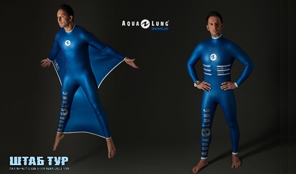Конструкция, которая, очевидно, была частично позаимствована у экипировки скайдайверов, не предусматривает использование какого-либо дополнительного снаряжения в виде баллонов с воздухом или ласт. Идея заключается в том, что благодаря перепонкам между ногами и руками дайвер сможет без особых усилий скользить под толщей воды.