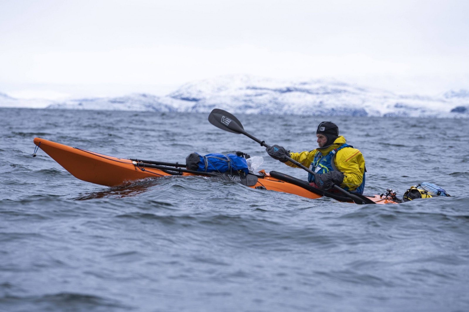 Кин отправился в свое приключение из Какортока в апреле 2023 года после двухнедельной задержки из-за стойкого морского льда. Весна была холоднее обычного, временами опускаясь примерно до -10 ° C. Несмотря на свой ограниченный опыт, британский шеф-повар уверенно продвигался вдоль первой трети береговой линии. Однако воды вокруг Нуука стали новым испытанием из-за сильных приливных течений и морского льда, который он прорубил ледорубом, прикрепленным скотчем к его веслу. Ранее он также боролся с бурным морем недалеко от Паамиута.