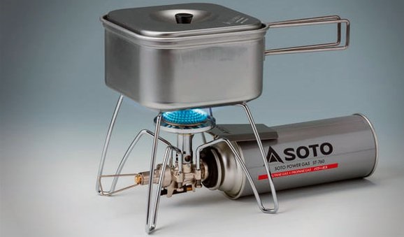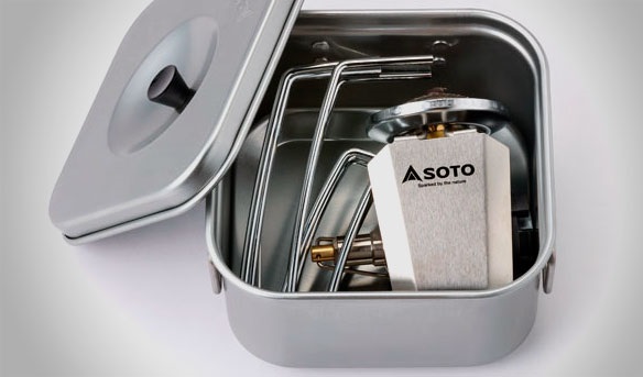 Котелок комплекта Soto ST-310CS, дополняющийся крышкой с термоустойчивой ручкой и складными ручками из нержавеющей стали, имеет характерную квадратную форму и изготовлен из обработанного анодированного алюминия. Общие размеры литрового котелка не превышают 140 мм как в ширину, так и в длину, высота котелка всего 80 мм, а общий вес не более 200 грамм. Таким образом общий вес всего комплекта, без баллона (вес баллона с бутано-пропановой смесью 340-350 г) и транспортировочных чехлов, составляет около 550 грамм с цеником 70 долларов.