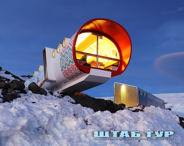 Строительства горной хижины LEAPRUS на Эльбрусе , в районе «Приюта 11». Плановые сроки открытия — середина июля. Я еще усмехнулся: «Чтобы развеселить Бога. Приют LEAPRUS размещен между «бочками» и «Приютом 11».