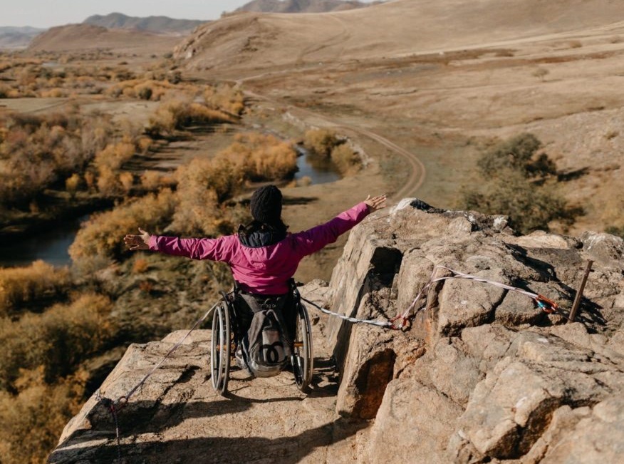 Восхождении на Мунку-Сардык с Аюной, которая может передвигаться только на коляске.
