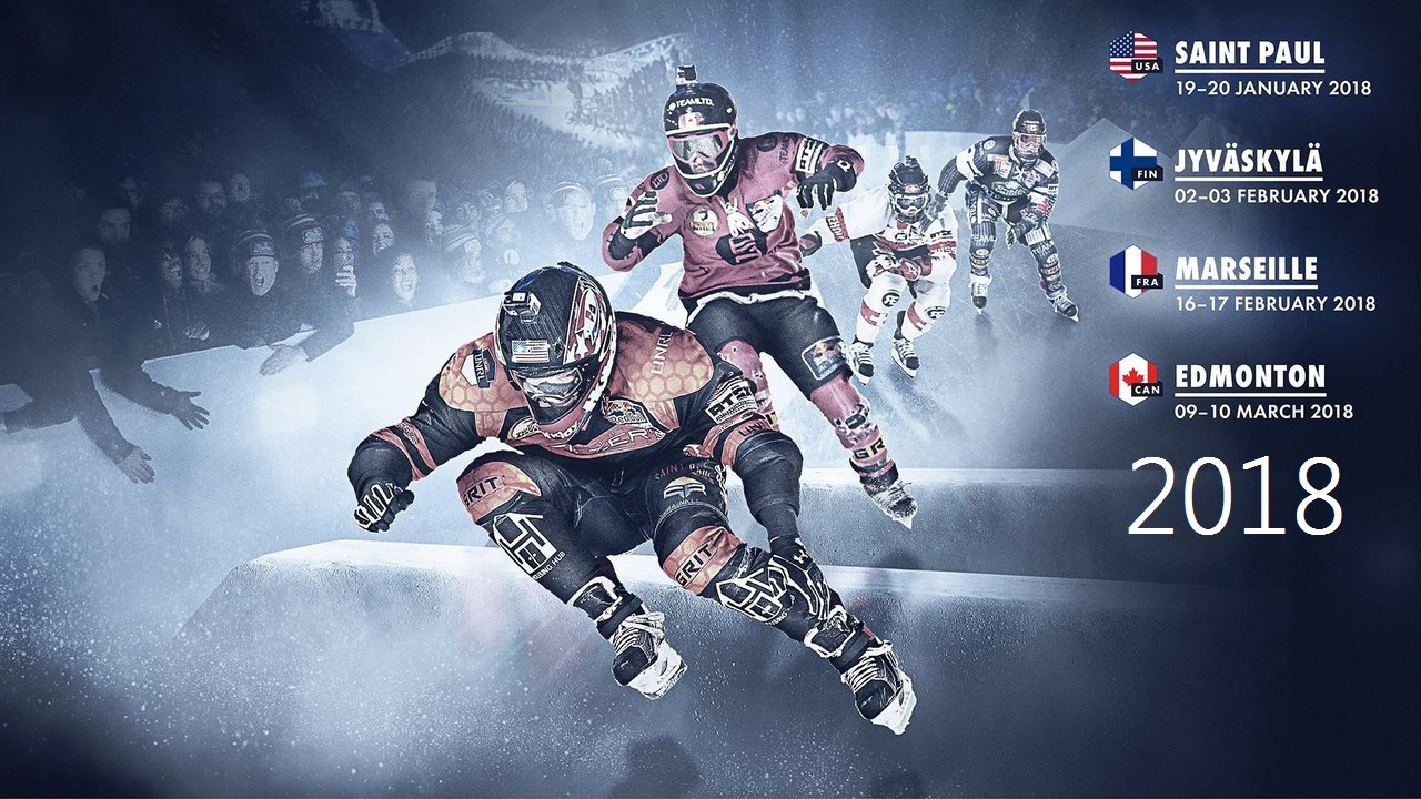 Red Bull Crashed Ice 2018 год 1 - 1 этап чемпионата мира по скоростному спуску на коньках 2018 пройдет с 20 января по 10 марта в г. СВЯТОЙ ПАВЕЛ США, г. ЮВЯСКЮЛЯ / ЛААДЖИ ФИНЛЯНДИЯ,г. г. МАРСЕЛЬ ФРАНЦИЯ, г. ЭДМОНТОН КАНАДА.