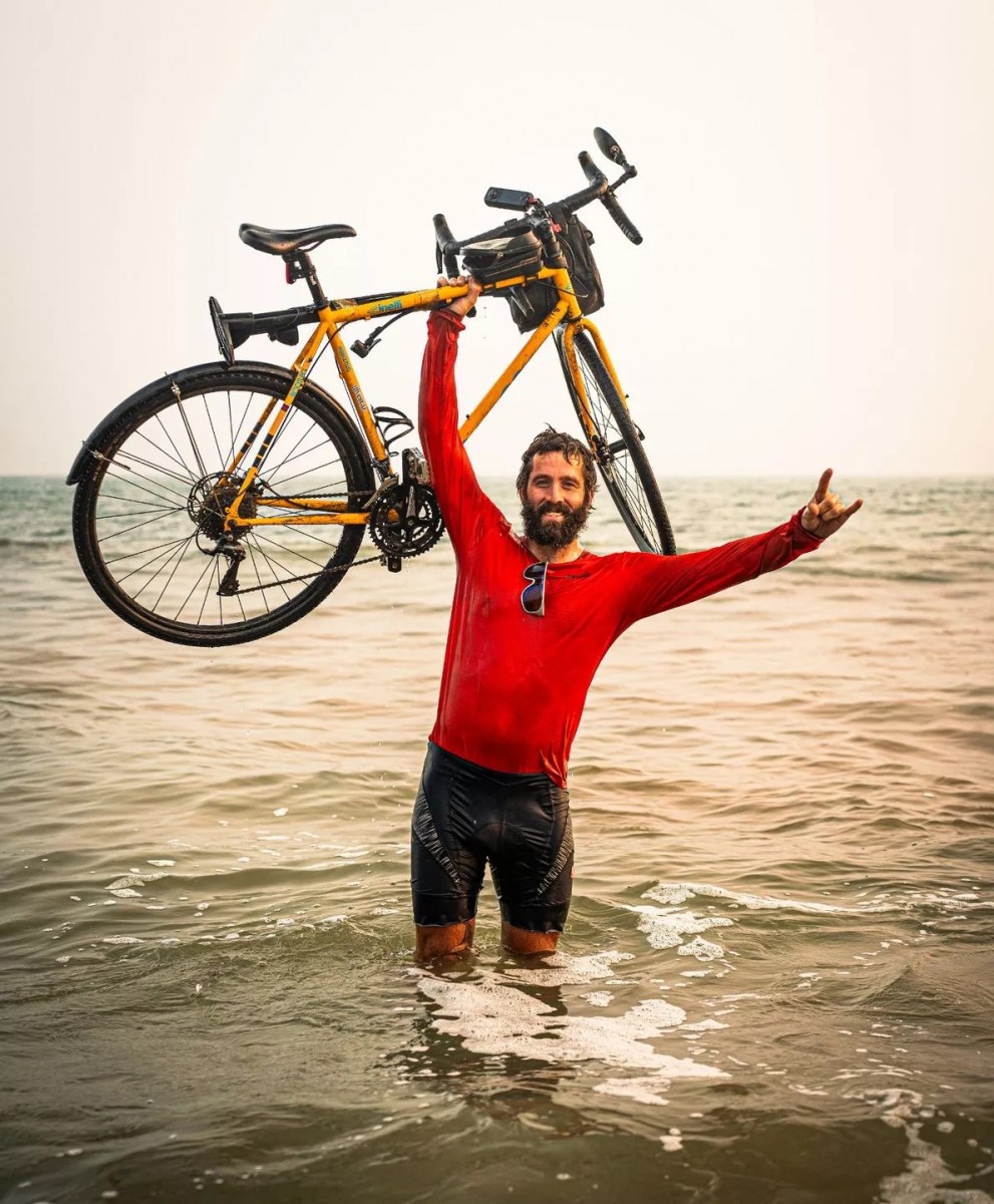 Сильный духом и телом Митч Ханткрафт, девять месяцев вплавь, на велосипеде и бегом добиравшийся до вершины Эвереста от своего дома в Великобритании.