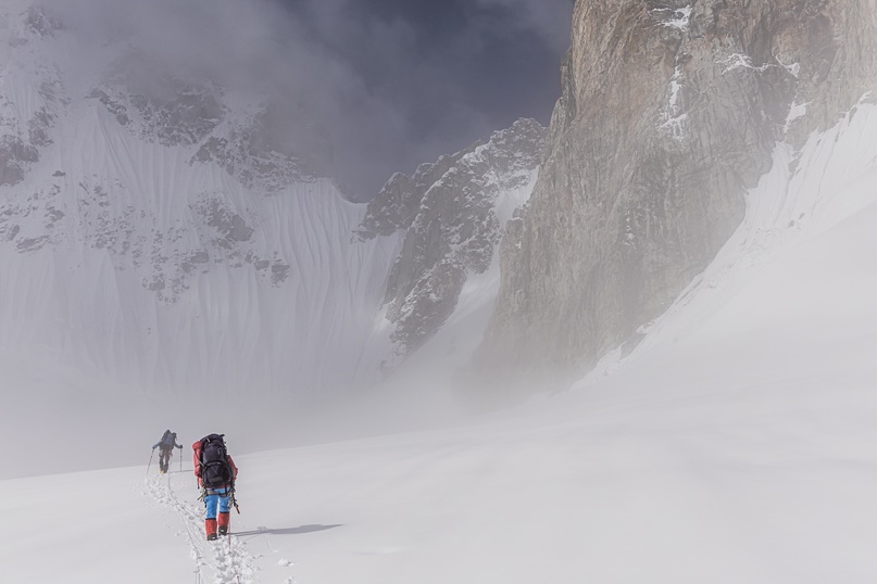 Лавина со стены и подъём на перевал