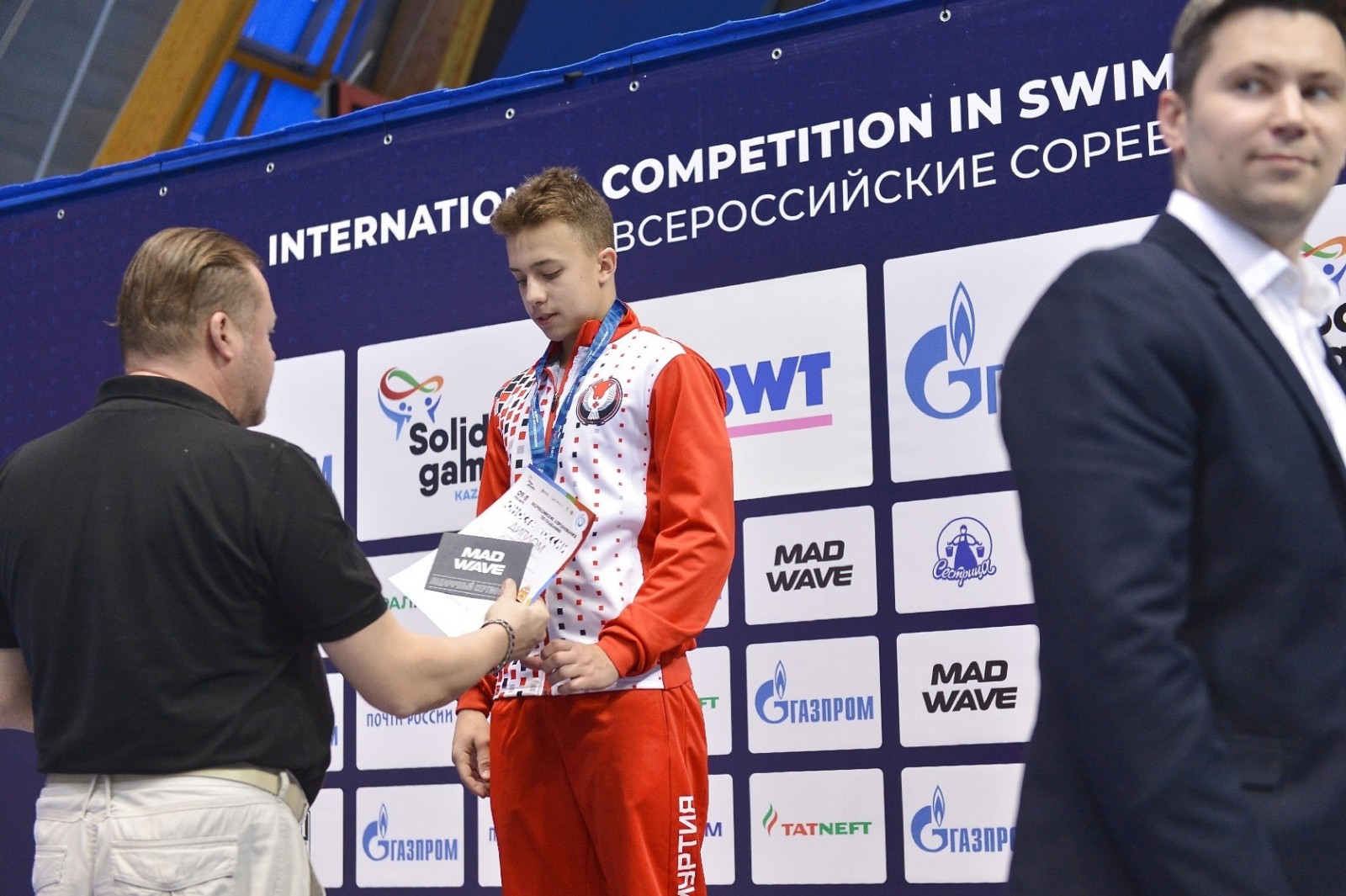 Ижевчанин Иван Мохов на 100 м комплексным плаванием среди юношей 13-14 лет взял золото.
