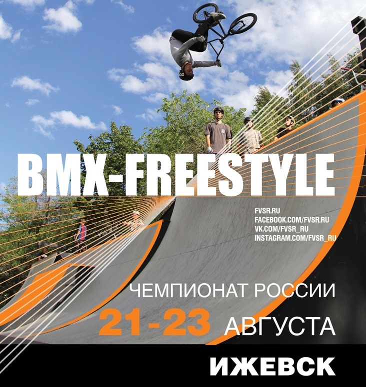 С 21 по 23 августа в Ижевске, на территории спортивно-ландшафтного комплекса "Сети -парк" пройдет чемпионат России по велосипедному спорту в группе дисциплин BMX-фристайл-парк. В чемпионате России в группе дисциплин BMX-фристайл-парк 2020 примут участие около 50 спортсменов из Москвы, Московской области, Санкт-Петербурга, Ленинградской области, Казани, Красноярска, Краснодарского края,