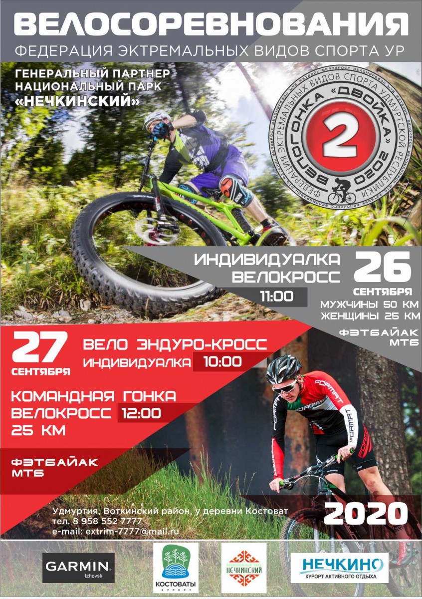 Велосоревнования проводится с целью пропаганды здорового образа жизни, популяризации велоспорта среди широких масс. Дата: проведения: 26-27 сентября 2020 года. Место:проведения: Национальный парк "Нечкинский" между поселками "Новый" и"Костоваты" Воткинский район Удмуртская Республика. Дисциплины: Кросс-кантри/ XCO/ МТБ /FatBike - Веломарафон 26 сентября - Эндуро-Кросс 27 сентября