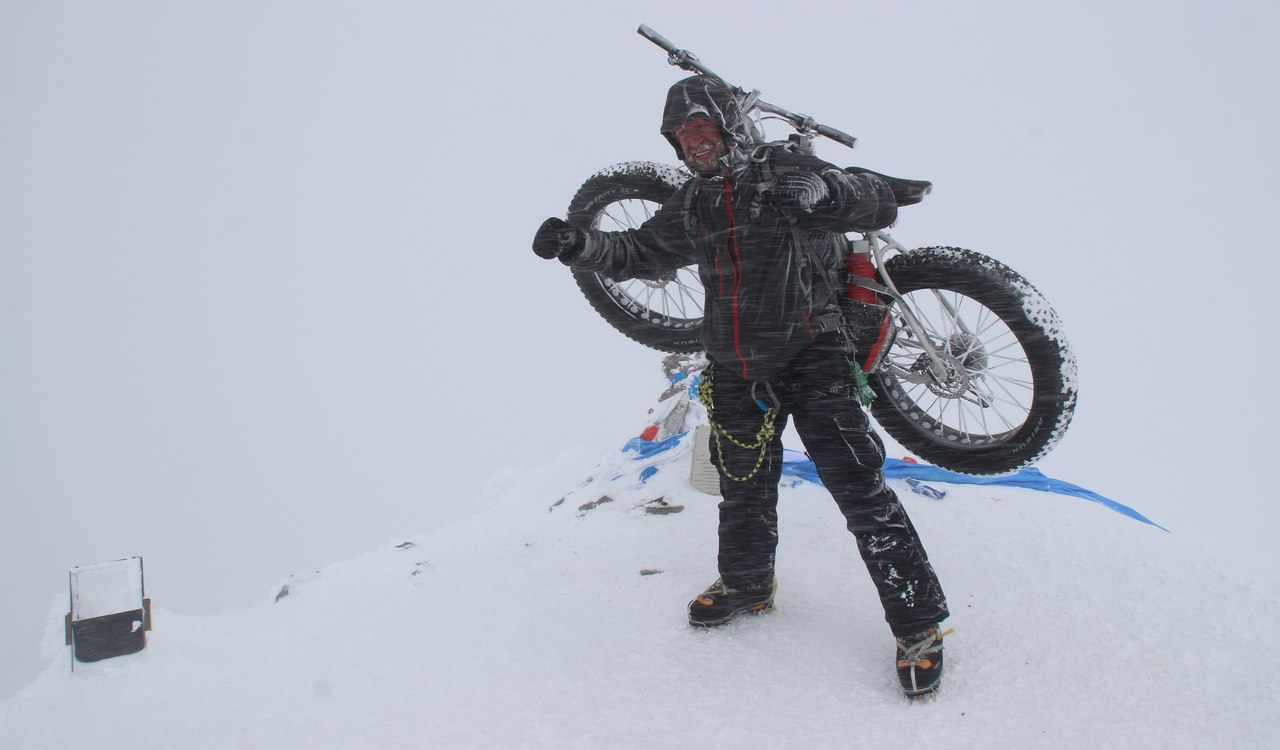 Велосипед (Fat Bike) на вершине г. ЭЛЬБРУС 5642 / 7 мая 2018 г. ПЕРВЫЙ ВЕЛОСИПЕД НА ВЫСОТЕ 5642 М.