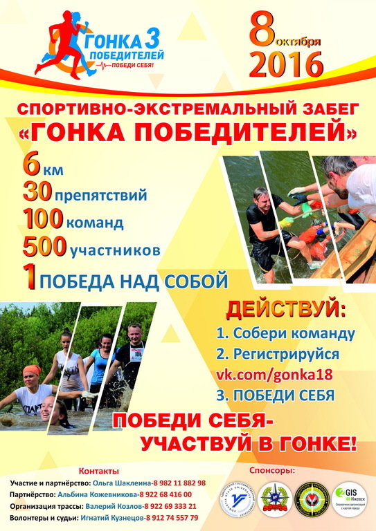 Дата: 08 октября 2016 года Место: на базе «Воложка» г. Ижевск Участников: более 500 человек, Любой желающий может стать участником мероприятия, независимо от уровня спортивной подготовки. Ограничение по возрасту 16+.