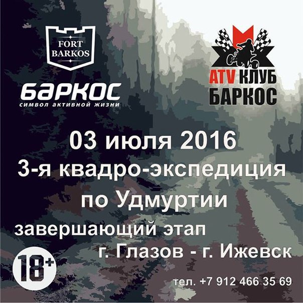Команда ATV клуб Баркос, Удмуртская республика отправляется в 3-ю квадро-экспедицию по Удмуртии. Это будет завершающий этап с г. Глазов до г. Ижевск, наш маршрут будет проходить по западным р-нам Удмуртии. Состав квадроциклистов хорош, это проверенные друзья-квадроциклисты участники многих наших мероприятий.
