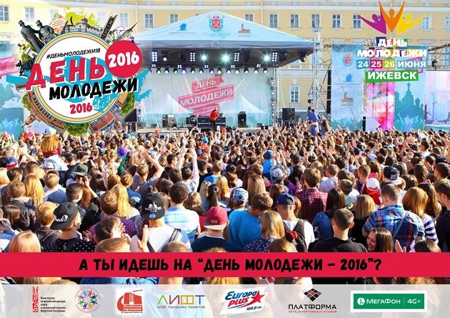 Место: г. Ижевск Дата: с 24 по 26 июня 2016 года «День молодежи» 2016 г. - это фестиваль запомнился разнообразием концертных площадок, невероятными проектами, увлекательными мастер-классами, танцевальными и спортивными мероприятия
