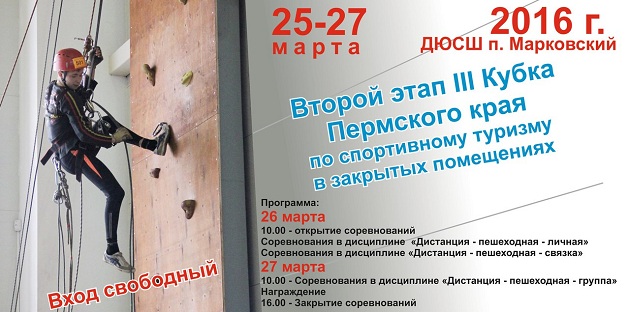 Дата: с 26 по 27 марта 2016 год Место поселк Марковский Пермский край В десциплинах на пешеходных дистанциях в закрытых помещениях. Организаторами соревнований являются Станция детского и юношеского туризма и экскурсий при поддержке Министерства физической культуры, спорта и туризма Пермского края.