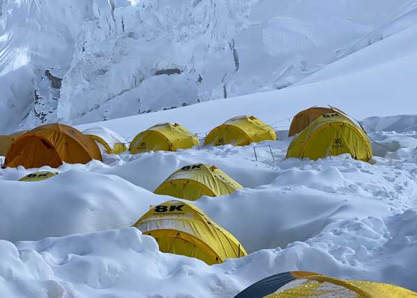 Нам удалось подняться всего за 9 дней. 18 сентября прилетели в Самагаон, сразу поднялись в базовый лагерь. Далее в лагерь 1, лагерь 2, собирались выше, но пришлось вернуться из за неготовности там лагерей. Спустившись в базовый лагерь, на следующий день опять пошли вверх. С самого первого дня в базовом лагере отслеживали погоду и звучало каждый раз лишь одно: сходить можно 23, 24, 25, 27 сентября, но, главное, не 26-го из за обеденного сильного снегопада и ветра.