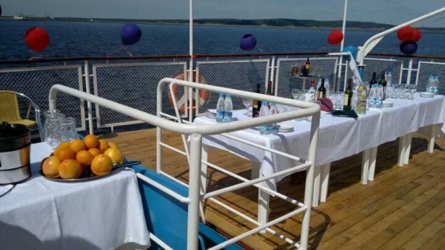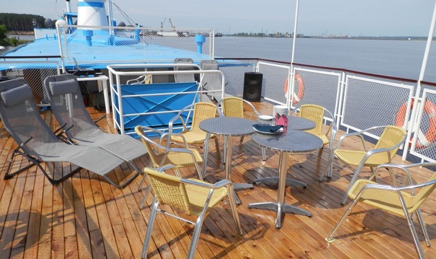 Верхняя палуба подойдет для организации праздничного застолья, фуршета, дискотеки под открытым небом, а также идеально подойдет для принятия солнечных ванн и наслаждения живописными окрестностями